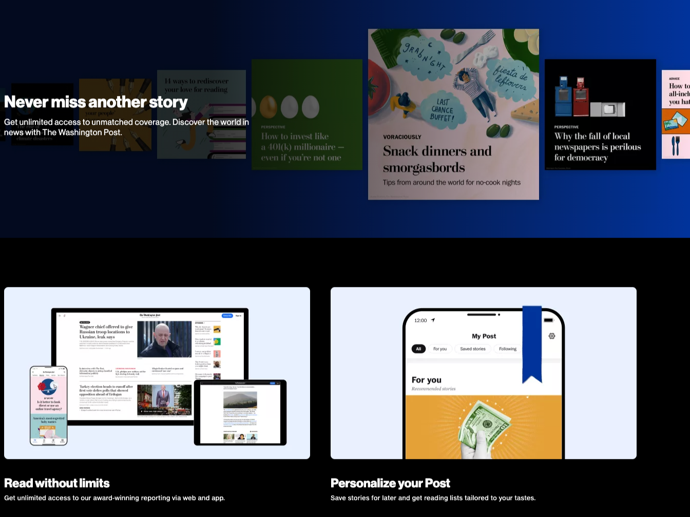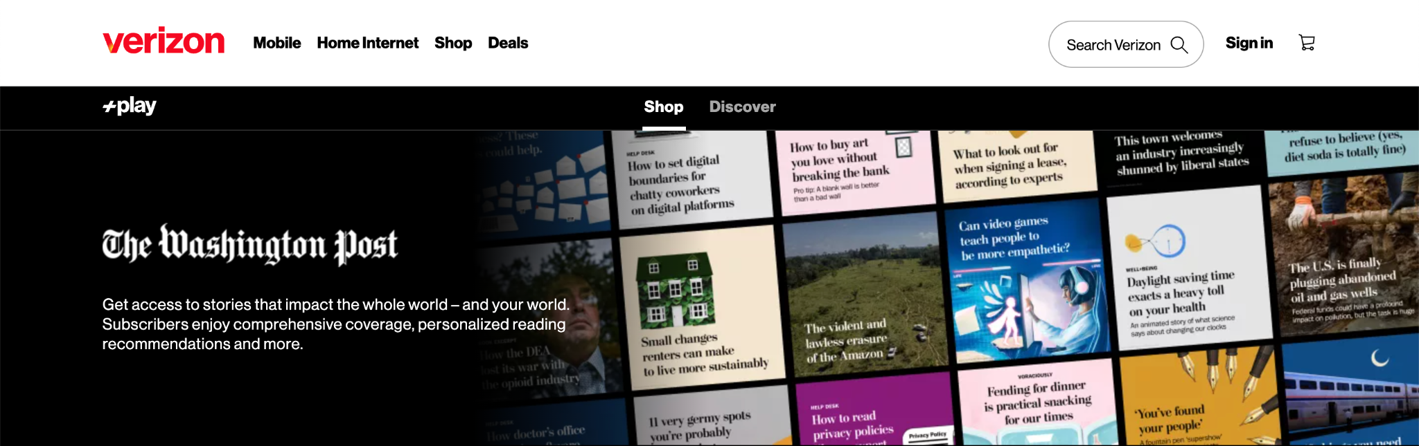 When Verizon launched +play, its consolidated subscription hub, The Washington Post was among the first available offerings. Even better, The Post was featured on the Verizon +play homepage carousel. This partnership offered an incredible opportunity for The Post to further expand its reach by offering readers a new, more convenient entry point.